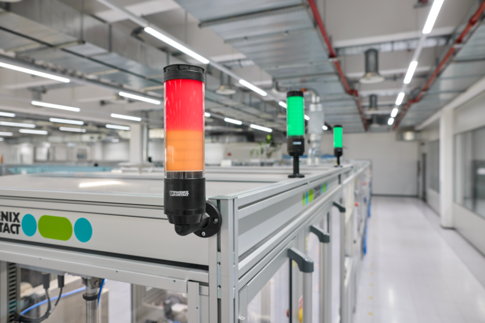 PSD-SC シリーズの新しい積層信号灯は、9 個または 15 個の RGB セグメントを持つ 2 種類のサイズがあり、トラフィックライト、自動スケール、充填レベル、個別点灯ステータス表示を含む 4 つの動作モードで、産業機械の状態を正確に表示できます。RGBセグメントは個別に制御でき、高輝度で日中でも視認性が良いのが特徴です。2つのバージョンには、6つのキーに10個の音色を持つ音響エレメントが内蔵されており、視覚的な信号を音響で補足します。信号灯は PLCnext Engineer の IODD 統合により IO-Link 経由で設定でき、既存のオートメーションシステムに簡単に統合できます。IP66/IP69K、ULタイプ4/4X、IK08の保護等級を備えた堅牢な設計により、過酷な産業環境でも安心して使用できます。M12 接続テクノロジと柔軟な取付けオプション(床取付け、パネル取付け、パイプ取付け)により、信号灯はさまざまなアプリケーションで使用できます。