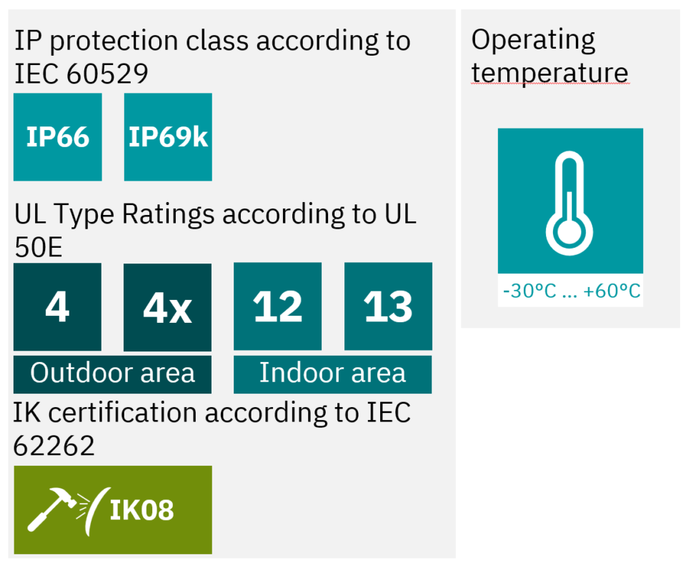 電子的および機械的に堅牢な設計、耐UV性のあるハウジングが付いており、屋外使用可能です。