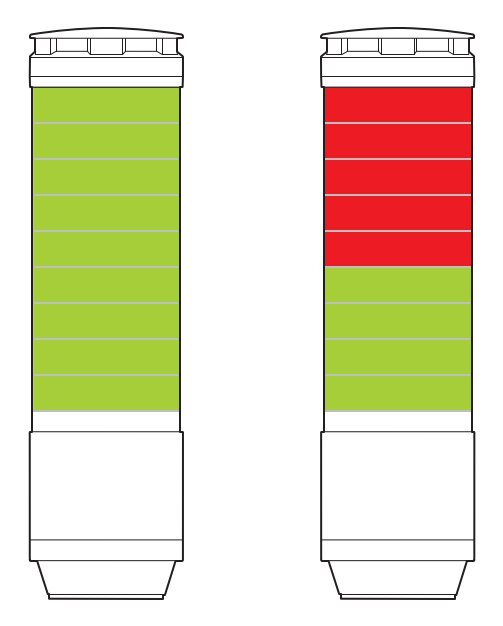 従来通りの積層信号灯のように固定位置と固定サイズで色掛けてます。5段まで設定可能です。